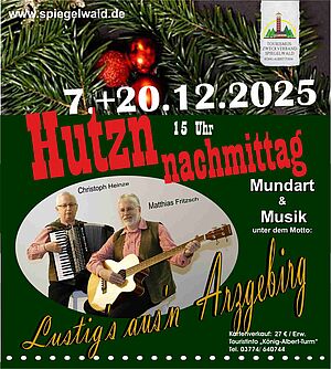 7.+20. Dezenber, 15 Uhr - Hutznnachmittag (Anmeldung erforderlich)